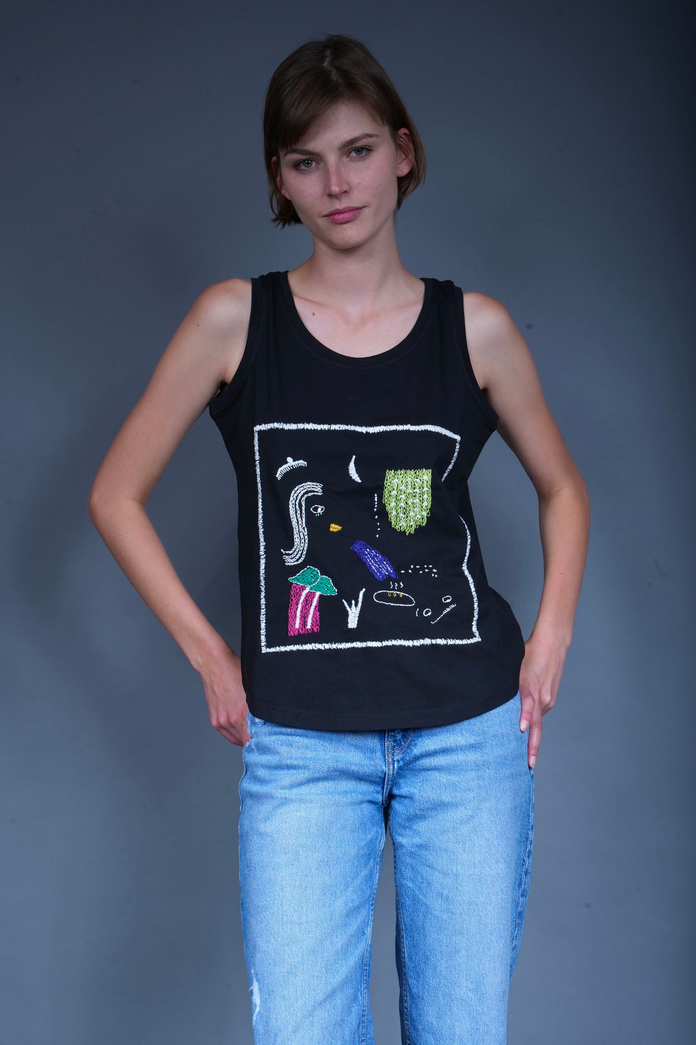 Organic cotton top embroidered with an original design by Sasha Mingasson