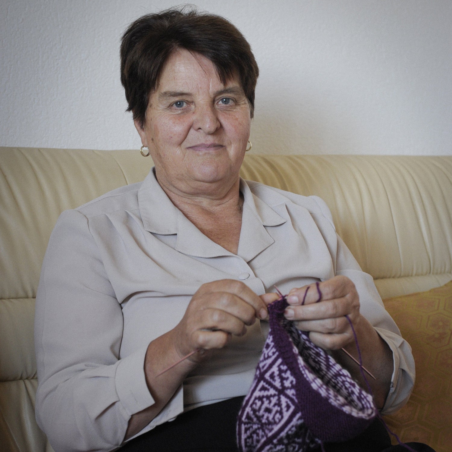 Huma, tricoteuse de la région de Konjic : « Nous les femmes, sommes restées comme des "arbres abattus" comme on dit chez nous. Sans éducation, sans emplois… Nous n’étions pas appréciées, et notre position au sein du foyer était considérée comme acquise. Mais aujourd’hui, à force de tricoter, j’ai gagné en courage, je me sens plus confiante. Et puis, c’est vrai, l’argent compte aussi : désormais je n’ai plus à demander de l’argent à mon mari pour faire des choses pour moi. »